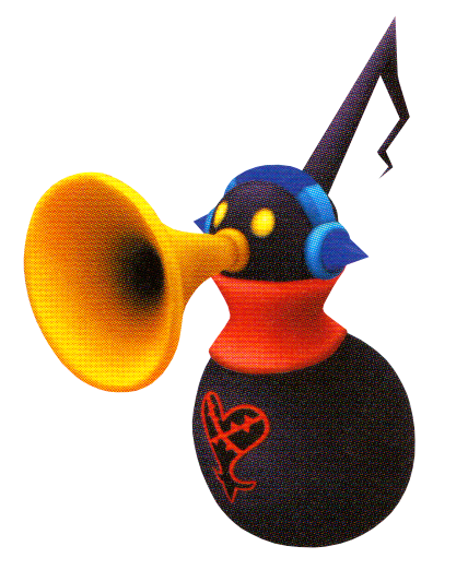 This one is simply adorable! Looking like a living bike horn, it has a bulbous body and a funny head with a little musical note motif, some headphones, and that huge, honkin horn-mouth. It squeaks and honks as it bounces around adorably, and can either call for reinforcements or heal its Heartless allies. See, this thing is so cute it couldn't possibly do harm!